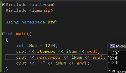 pos는 positive number를 줄여 말한 것이며, showpos는 양수임을 표현할때, noshowpos는 평소나 다름없게 출력한다.