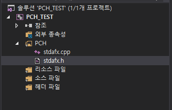 Precompiled Header는 타 소스와는 다르게 관리하기에 헤더 추가에 용이하게
